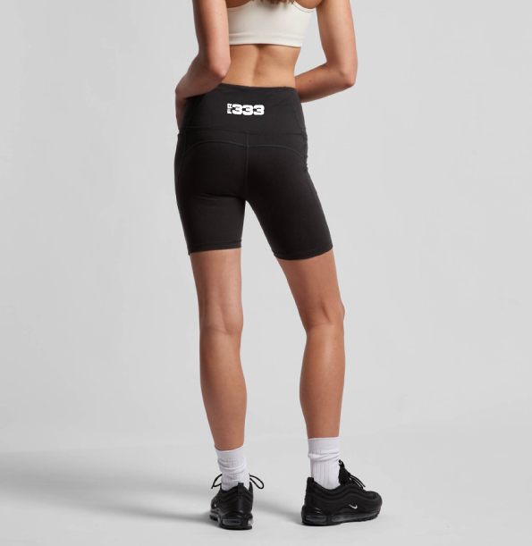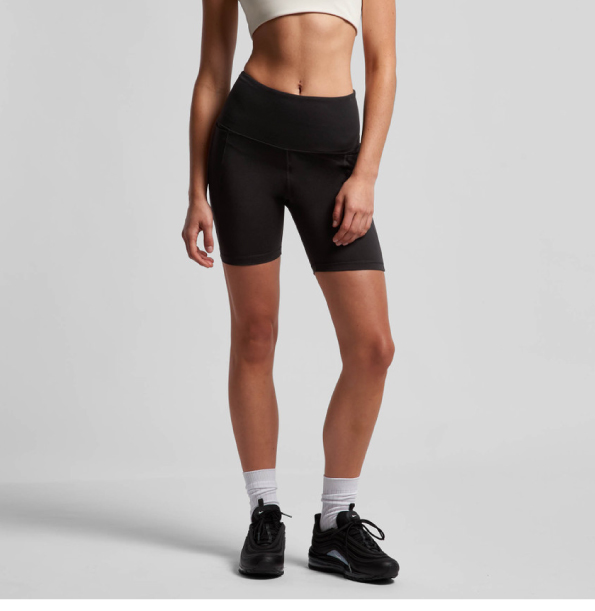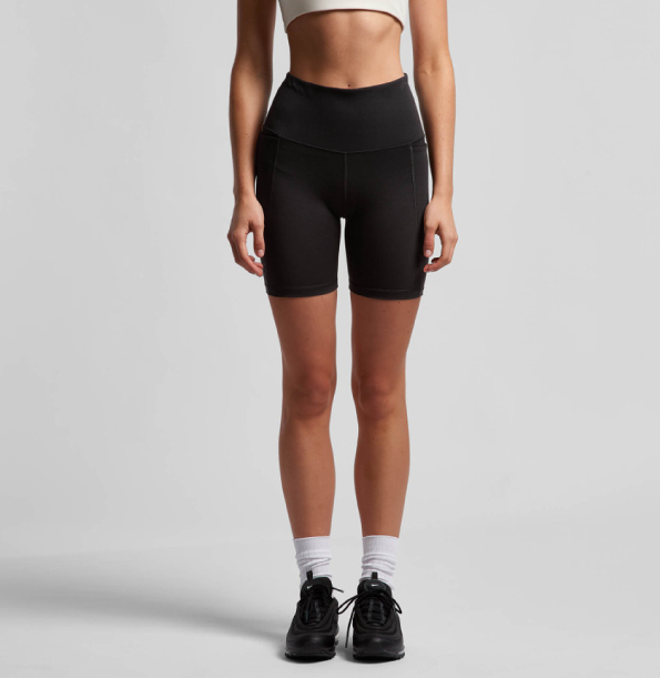 Matte finish, mid-thigh length, high waist, 2 x side pockets, contour seam detailing, moisture wicking, quick drying, high elastane content for resilience, suitable for low to medium impact activities