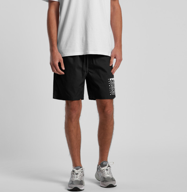 Casual shorts, 2 side and 2 back mesh lined pockets, shorter length, elastic waistband, internal drawcord, preshrunk to minimise shrinkage