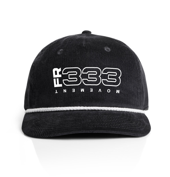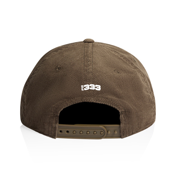 Fr333 Class Cord Rope Cap: A mid-weight, unstructured five-panel cap crafted from 100% cotton with 16-Wale Partridge Cord. Enhanced with a unique matte nylon rope detail at the crown for a modern appeal. With a flat peak, adjustable metal clasp fastener, and tonal under-peak lining.