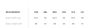 Neck ribbing, cropped full length, side seamed, shoulder to shoulder tape, double needle hems, preshrunk to minimise shrinkage