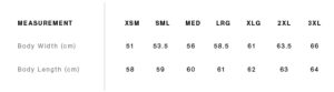 | Size | XS, S, M, L, XL, 2XL, 3XL |