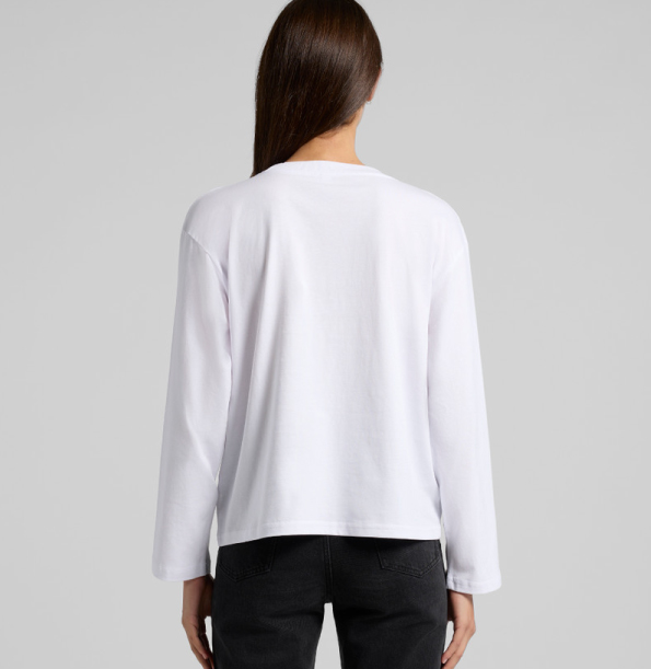 Drop shoulder, mid length, wider sleeve at hem, neck ribbing, side seamed, shoulder to shoulder tape, double needle hems, preshrunk to minimise shrinkage