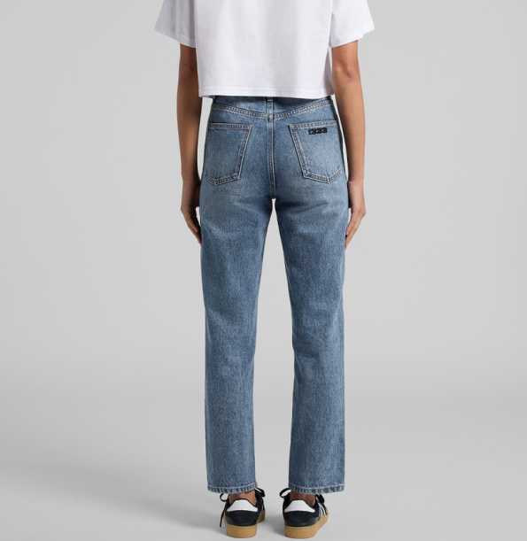 Straight leg, 2 side pockets, patch pockets at back, anti-brass metal YKK zip fly, rivets at front pocket corners, preshrunk to minimise shrinkage