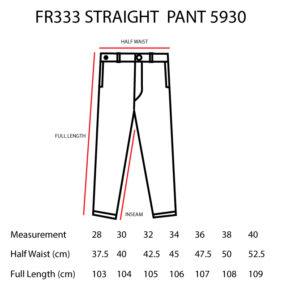 Fr333Â Straight Pant, tailored for a classic clean aesthetic. Featuring a straight fit, they offer a timeless silhouette. Two side hand pockets, jet pockets at the back, belt loops, a button fly closure, and YKK zip fly ensure our Straight Pants combine style with comfort.
