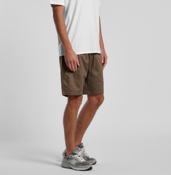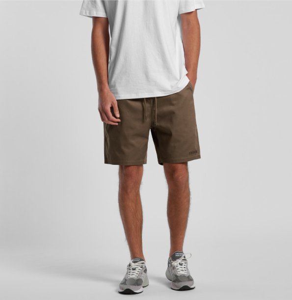 2 side pockets, jet pockets at back with button closure, elasticated waistband with metal tipped draw cord, preshrunk to minimise shrinkage